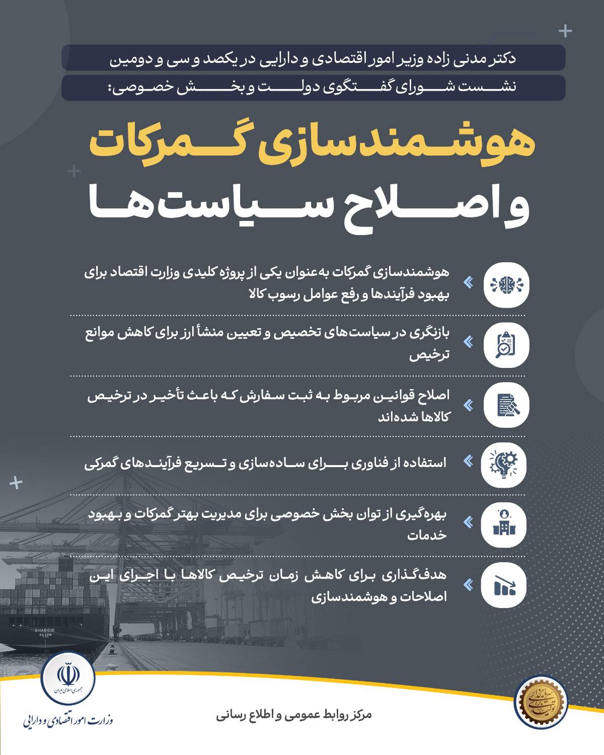 وزیر امور اقتصادی و دارایی در یکصدوبیست‌وسومین نشست شورای گفت‌وگوی دولت و بخش خصوصی تأکید کرد: هوشمندسازی گمرکات و اصلاح سیاست‌ها گامی موثر بر بهبود فرآیندها و رفع عوامل رسوب کالا است.