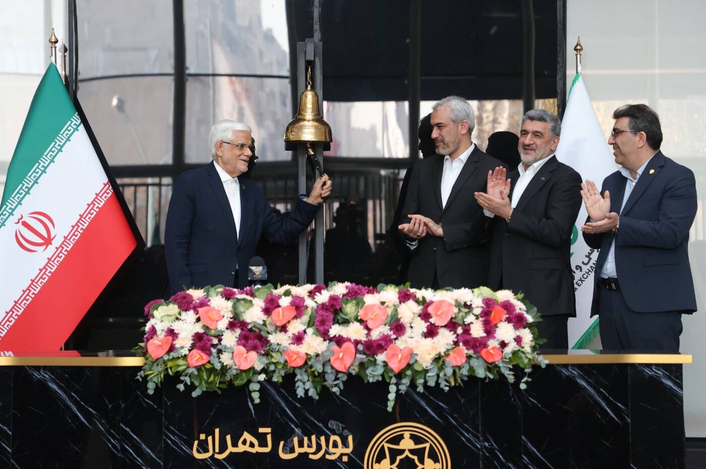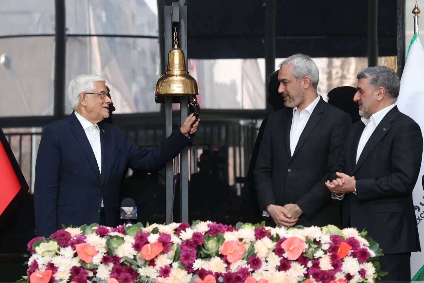 آیین نواختن زنگ معاملات بورس صبح شنبه بیست و نهم آذر ماه با حضور دکتر محمدرضا عارف معاون اول رییس جمهور و دکتر سید علی مدنی زاده وزیر امور اقتصادی و دارایی برگزار شد.